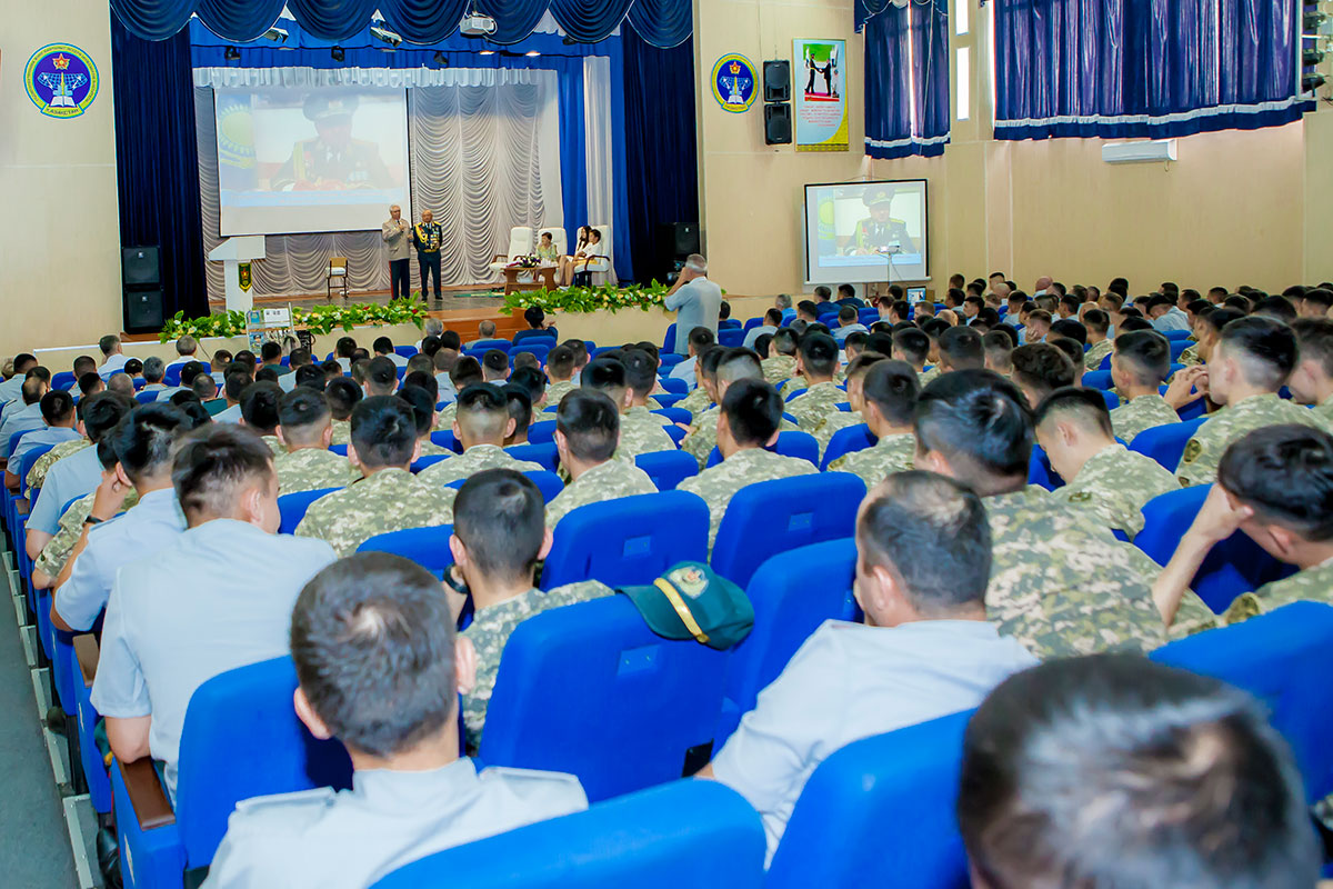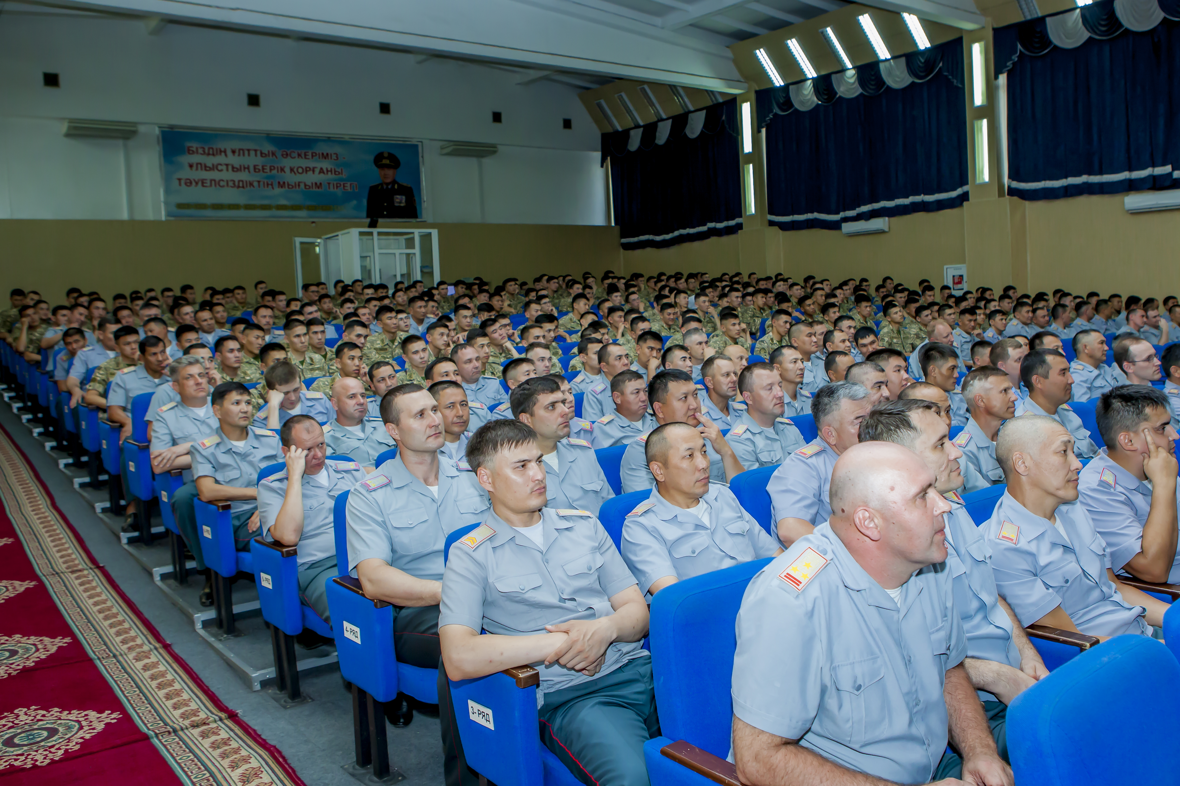 На торжественном мероприятии приняли участие ветераны Вооруженных Сил, военнослужащие Алматинского гарнизона, а также курсанты ВИИРЭиС.