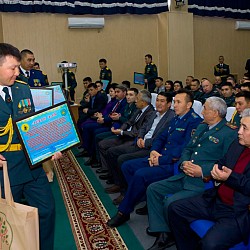 «Сегодня мы пригласили на торжественное мероприятие ветеранов Вооруженных Сил. В свое время они посвятили свою службу делу воспитания высоконравственных, стойких, профессионально подготовленных и преданных своему народу защитников Отечества. Сегодня действующие офицеры по воспитательной и идеологической работе также вносят большой вклад в проведение военно-патриотического воспитания молодого поколения, продолжая начатое дело своих наставников», - отметил начальник военного ВУЗа генерал-майор Аскар Мустабеков.