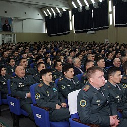 В торжественном мероприятии приняли участие военнослужащие Алматинского гранизона, ветераны Вооружённых Сил, а также курсанты и воспитанники военных учебных заведений.
