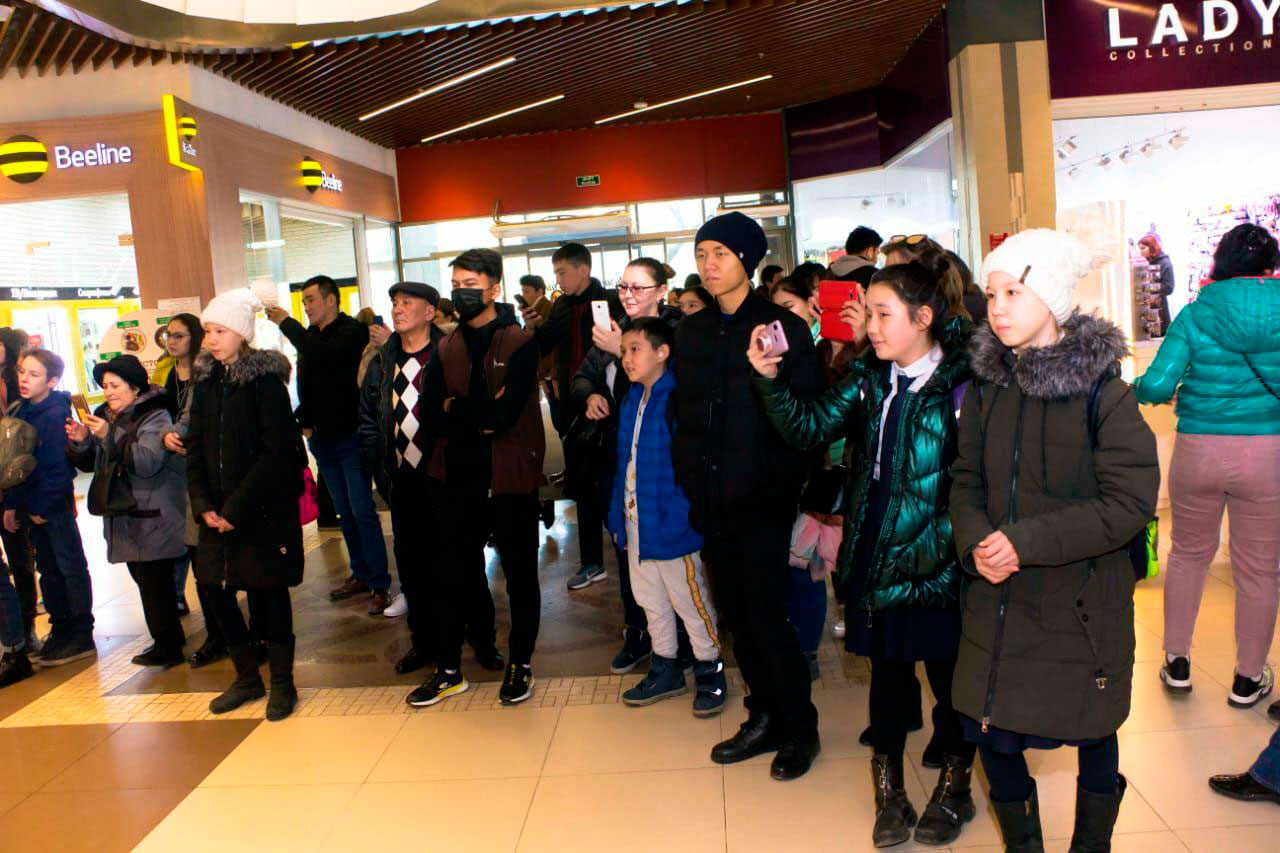 По словам организаторов музыкальный флешмоб сводного оркестра военных учебных заведений пройдет до конца мая еще в нескольких торговых центрах города Алматы.