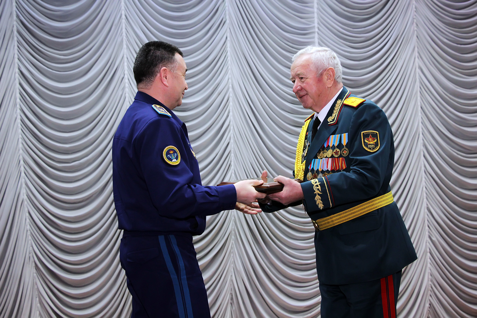 Юбилейный вечер начался с показа документального фильма о жизнедеятельности генерала. Юбиляру были вручены грамоты от лица руководства Министерства обороны и Генерального штаба ВС РК.