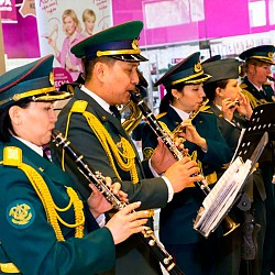 Музыкальный флешмоб устроил сводный военный оркестр Военно-инженерного института радиоэлектроники и связи Министерства обороны РК и Академии Пограничной службы КНБ РК для жителей и гостей г. Алматы в одном из городских торгово-развлекательных комплексов.