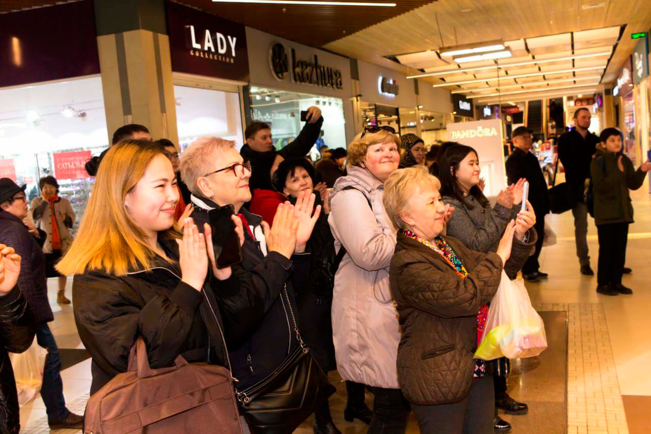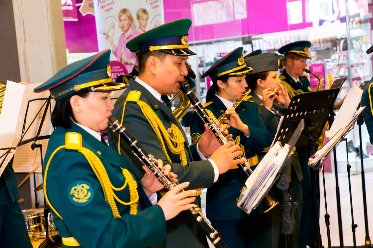 По словам организаторов музыкальный флешмоб сводного оркестра военных учебных заведений пройдет до конца мая еще в нескольких торговых центрах города Алматы.