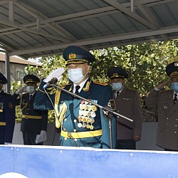 «Принимая военную присягу, воин клянется добросовестно изучать военное дело. Претворение этого требования обеспечивает поддержание боеспособности Вооруженных Сил, способствует повышению их боевой готовности. Военная присяга требует от вас быть бдительными, строго хранить военную и государственную тайну», – сказал начальник вуза.