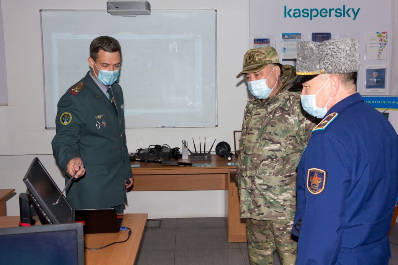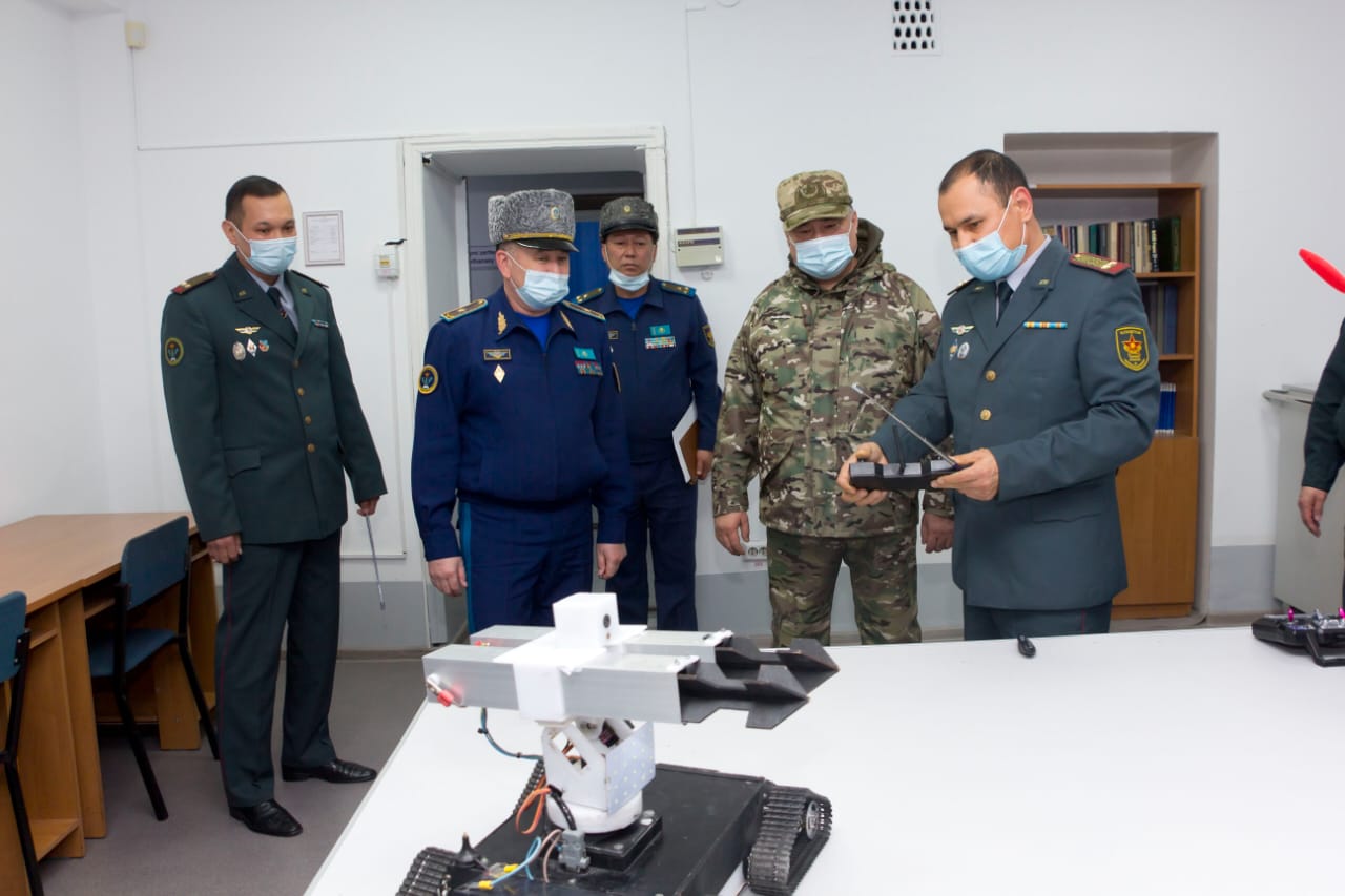 Замминистра обороны заслушал доклад начальника ВУЗа генерал-майора Аскара Мустабекова о текущих положениях дел и осмотрел учебные, методические кабинеты, кафедры, лаборатории, библиотеку, с уникальным библиотечным фондом, тренажерные комплексы, музей, компьютерные и лингафонные классы, оснащенные современным оборудованием. Кроме того, он осмотрел аудитории, где ему продемонстрированы образцы военной техники и вооружения.